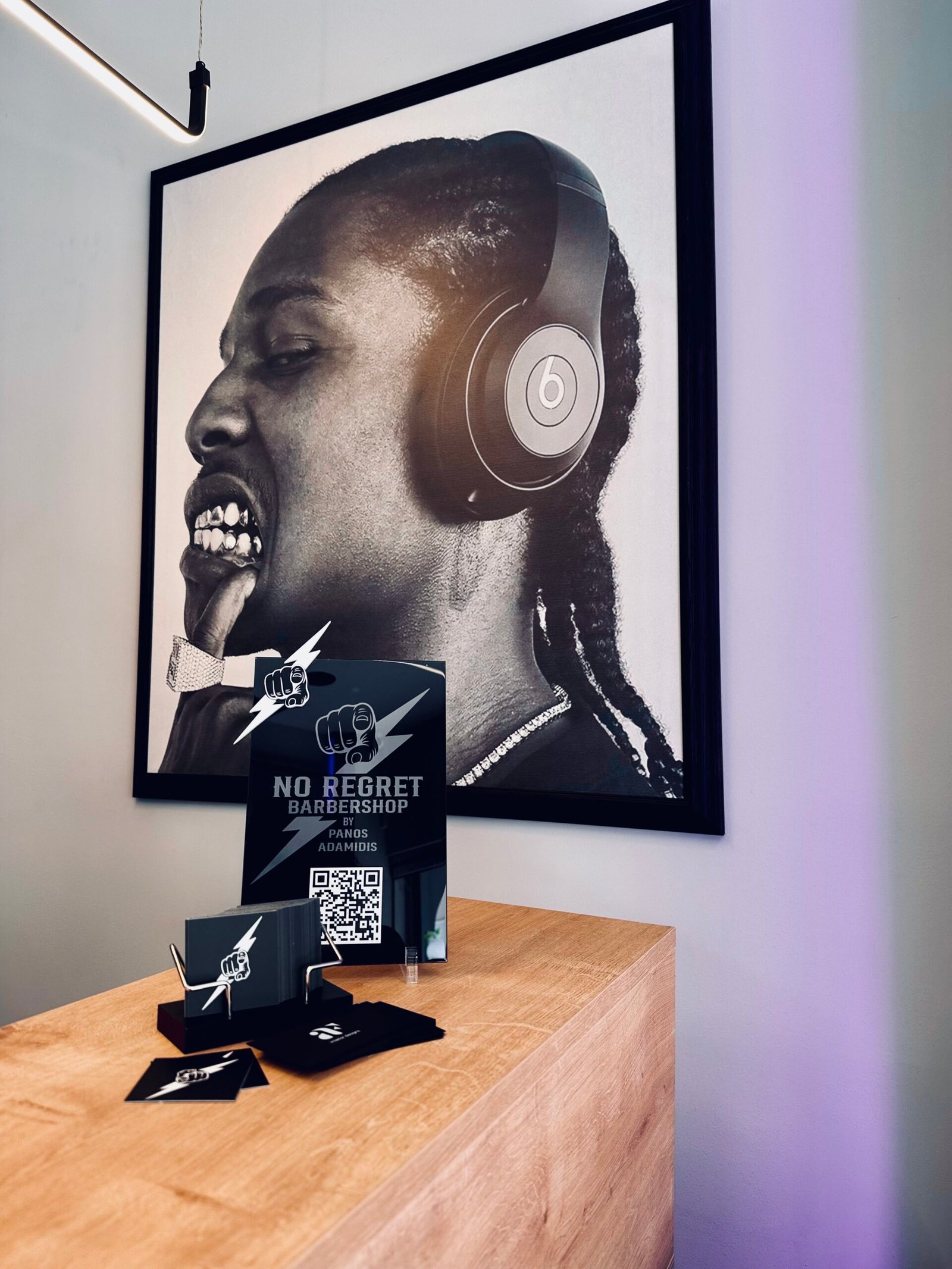 Το No Regret Barbershop κουρείο Παγκράτι είναι η προέκταση της φιλοσοφίας του: καθαρές γραμμές, καθαρό στυλ, καμία δικαιολογία. Ο χώρος του έχει σχεδιαστεί με έμφαση στη λεπτομέρεια: μοντέρνος industrial χαρακτήρας, φωτισμός neon, artworks με urban ταυτότητα, και περιβάλλον που εμπνέει άνεση και προσωπική σύνδεση.